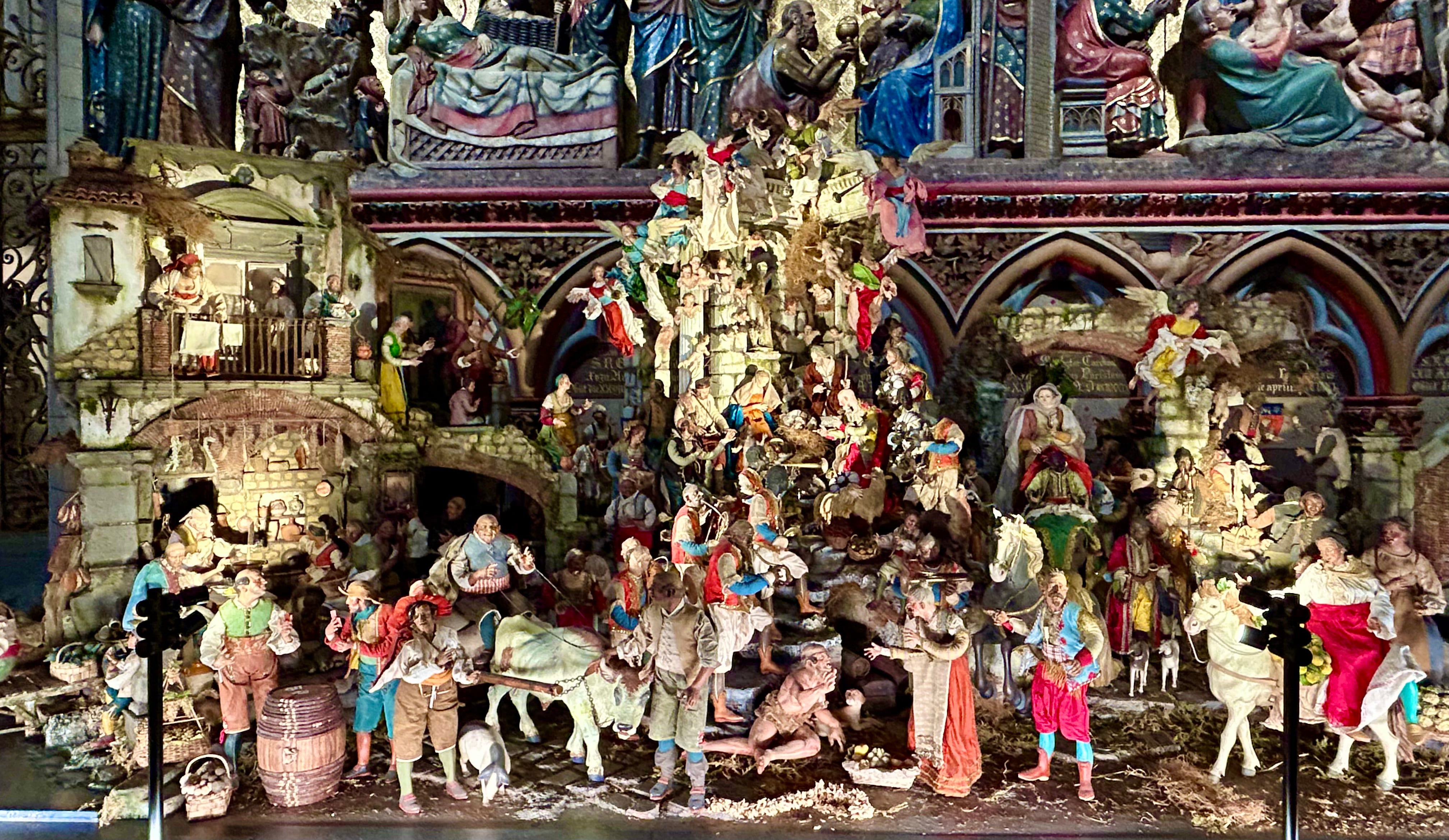 In spite of the lengthy lines on the Parvis, inside was not packed with people. It was easy to move around with the exception of seeing the crèche that is put up each December for Christmas. There the crowds were huge and not moving. It was the only time during the 90 minutes I spent inside the cathedrale that I was annoyed and wanted to jab a few people with my elbow.