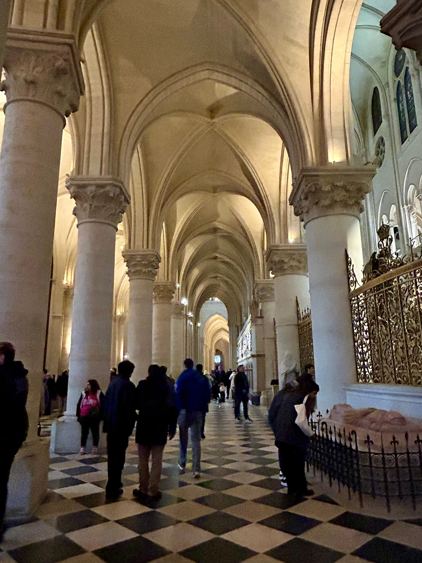 We then walked up the right side of the sanctuary stopping to sit for about 30 minutes just to let the feel of the place saturate us. President Macron is one of the most unpopular men in France at the moment but this five year project that he pulled off, the renovation of the Cathedrale, is stupendous. Once inside and looking at every detail, it is hard to imagine that it was all done in this time period. It justifiably will be the most visited tourist “attraction” in Paris this year.