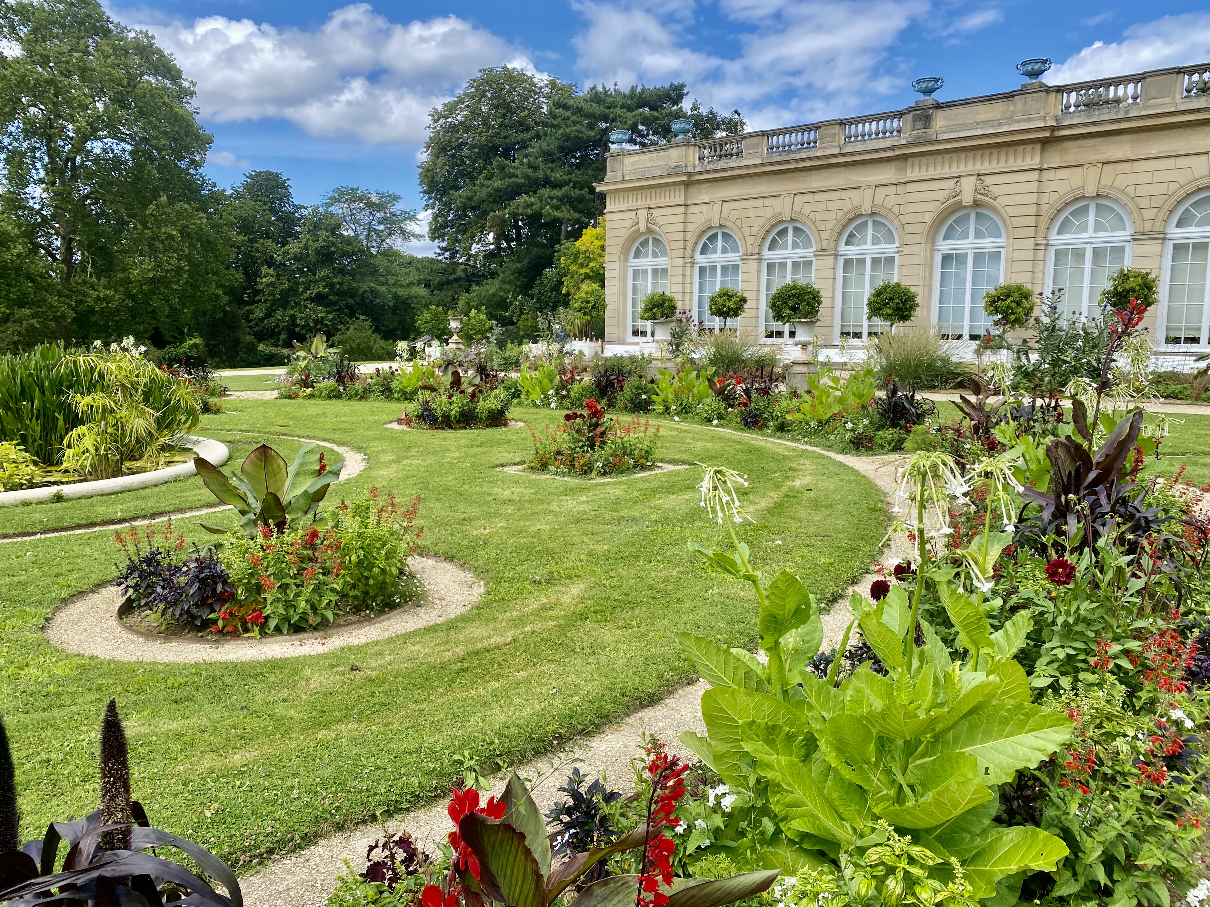 At the most western part of the Bois is the Parc Bagatelle which I just discovered this summer. I was on the phone with a friend talking about some of the gardens I’ve come to love and she asked me if I’d visited the formal rose garden in the Bois de Boulogne. Not only had I not visited it, I didn’t know it existed. So the next day, I set off to find this rose garden. “Bagatelle Park, located in the heart of the Bois de Boulogne, is one of the four poles of the botanical garden of the City of Paris. Created in 1775, the park and its castle were built in 64 days following a bet between Queen Marie-Antoinette and her brother-in-law the Comte d’Artois. Bagatelle Park is a place to walk and relax. In addition to gigantic trees and varied flora, small bridges, rocks, caves, mirrors and man-made waterfalls add charm and romance to the place. The 19th century Chinese pagoda is one of the park’s curiosities. The visitor especially admires a magnificent rose garden of 10,000 roses from 1,200 different species. The park regularly hosts exhibitions and events, and organizes classical music concerts in summer.“–official site of Tourism.