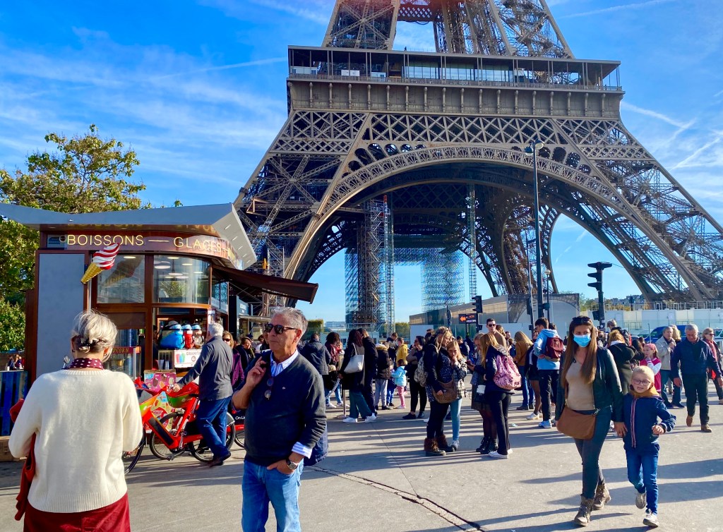 Across the street from the Eiffel Tower where the crowds are getting larger and larger