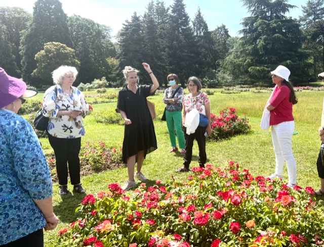 Amy Larue, tour leader and garden expert, explaining roses to us.